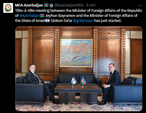 Azərbaycan xarici işlər naziri Ceyhun Bayramov İsrail xarici işlər naziri Gideon Saarla görüşüb.