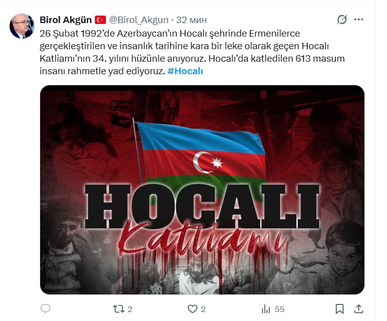Bizim.Media xəbər verir ki, bu barədə Türkiyənin Azərbaycandakı səfiri Birol Akgün “X” platformasında deyib.