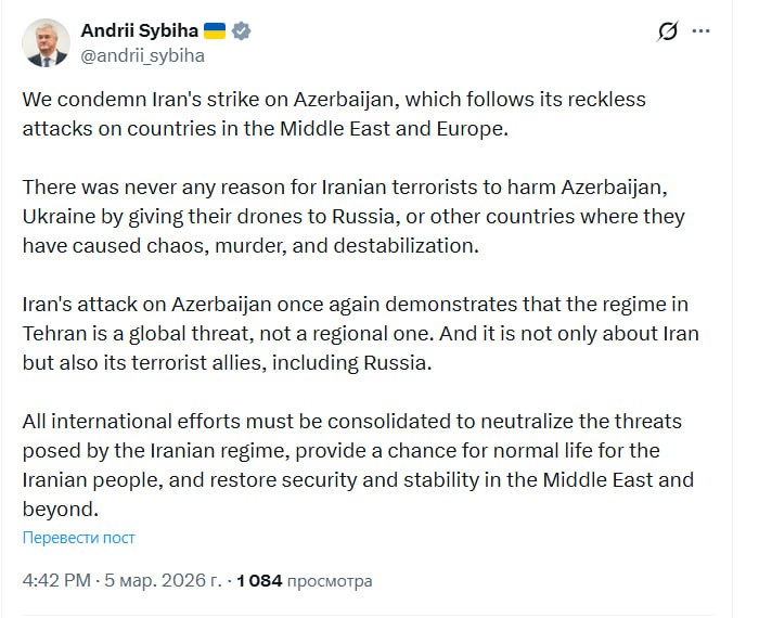 Bizim.Media xəbər verir ki, bu barədə Ukraynanın xarici işlər naziri Andriy Sibiqa sosial şəbəkə X hesabında yazıb.